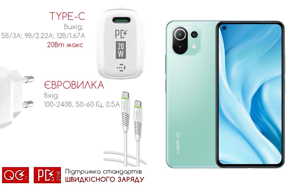 Quick Charger 20W 3A для смартфона Xiaomi 11 Lite 5G NE, Швидка зарядка