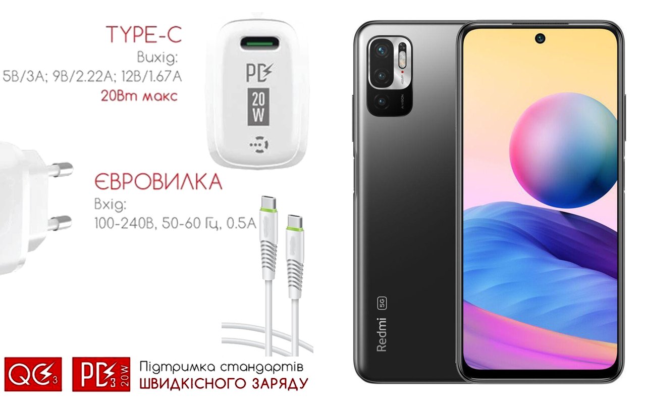 Quick Charger 20W 3A для смартфона Xiaomi Redmi Note 10 5G, Швидка зарядка