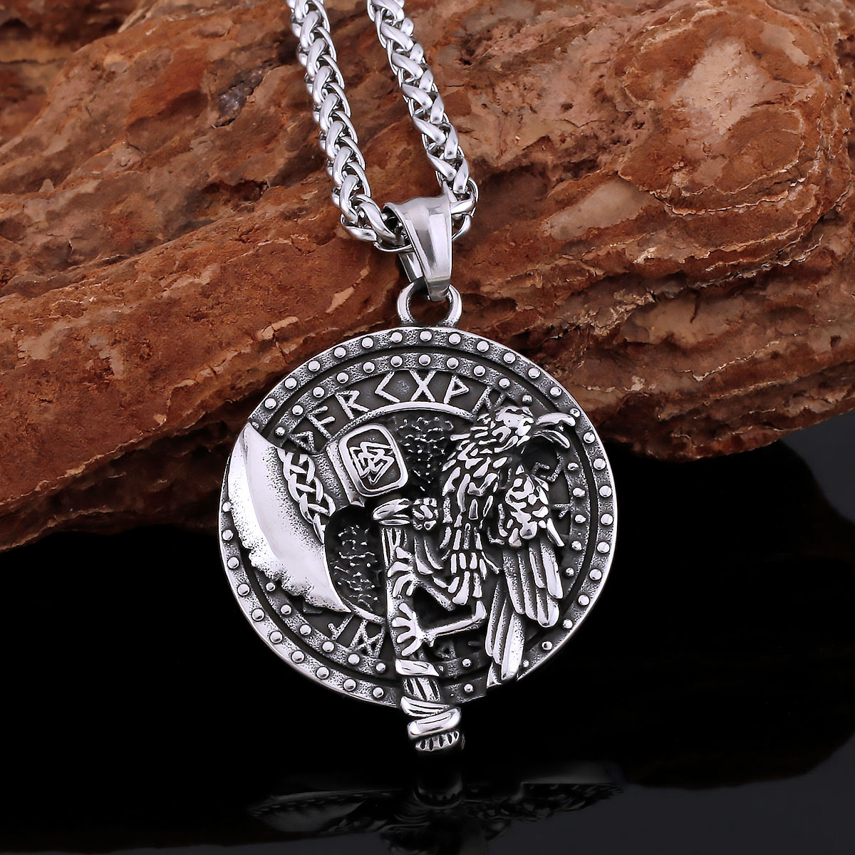 Обережний талісман Ворон Одіна можна зустріти не так часто, як інші зі скандинавської міфології, але при цьому не варто недооцінювати його значення. Основний елемент оберегу – це ворон у досить символічному відображенні. Багато знавців скандинавської міфології можуть сказати, що в Одіна було два ворони - Хугін і Мунін, але на цьому талісмані зображений один і він є збірним чином, в якому відображені обидва ворони верховного скандинавського бога.