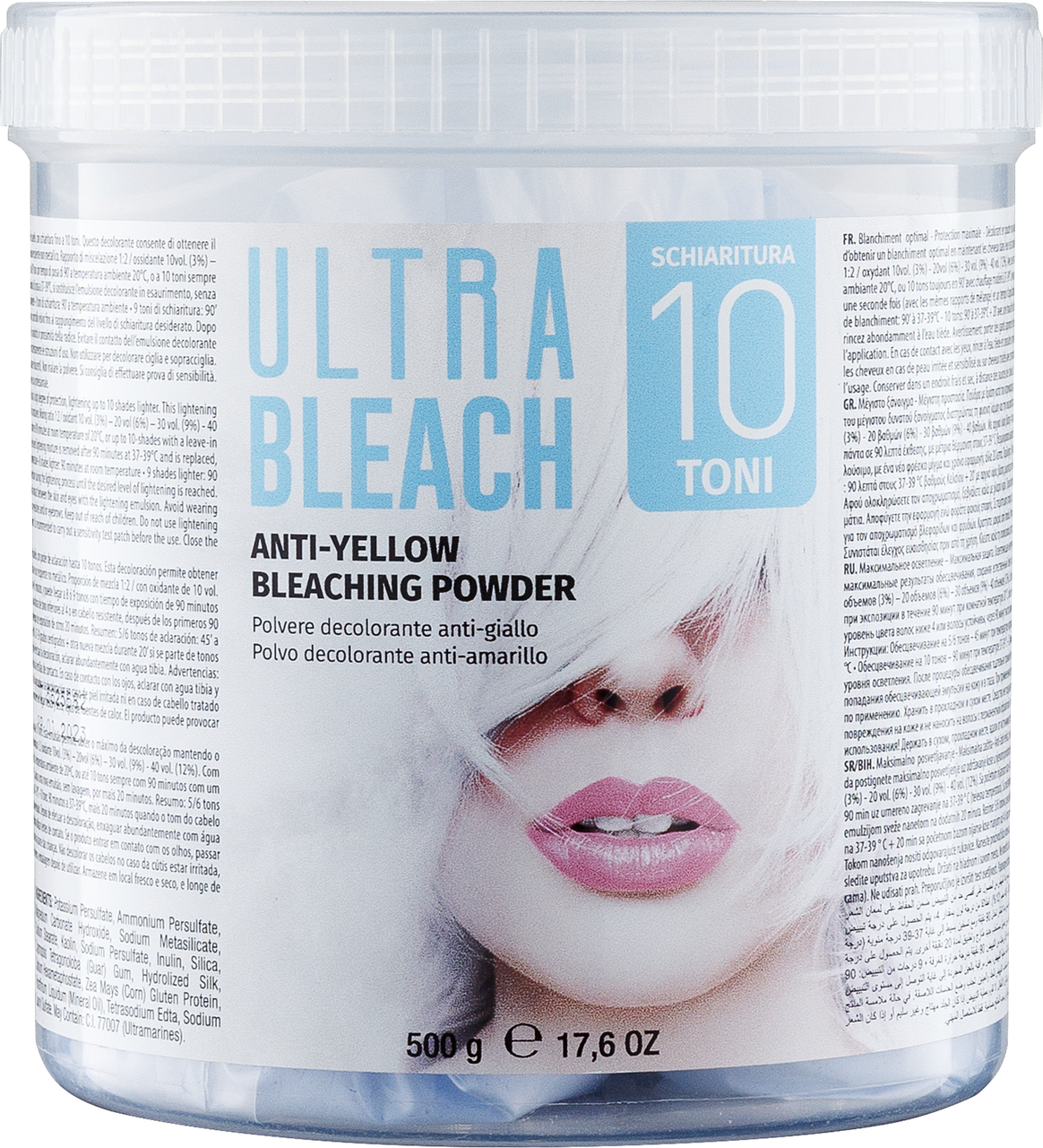 Максимальне освітлення — Максимальний захист. Освітлювальна нелетка пудра без жовтизни на основі бета-фруктоолігосахаридів із високим захистом волосся й освітленням до 10 тонів. Освітлювач дає змогу отримати максимальні результати знебарвлення, зберігаючи природний блиск і здоров'я волосся. Підходить для всіх технік освітлення.