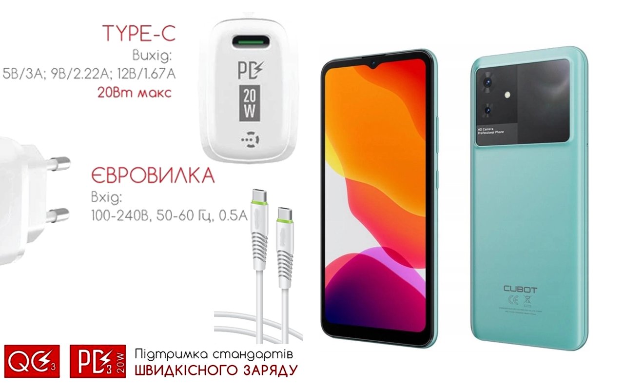 Quick Charger 20W 3A для смартфона Cubot Note 21, Швидка зарядка