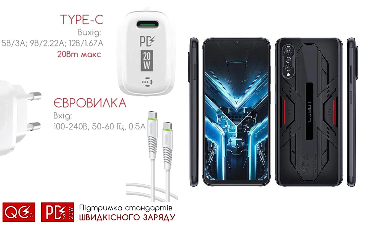 Quick Charger 20W 3A для смартфона Cubot X70, Швидка зарядка