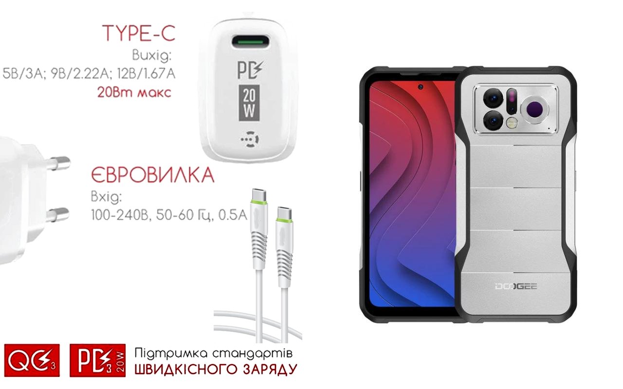 Quick Charger 20W 3A для смартфона Doogee V20 Pro Ultra, Швидка зарядка