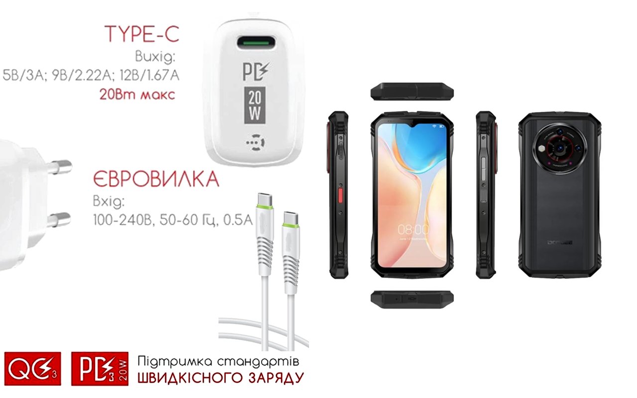 Quick Charger 20W 3A для смартфона DOOGEE V30 Pro, Швидка зарядка