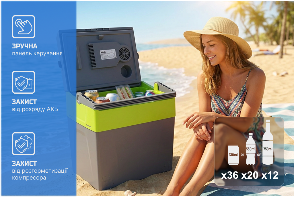 Живлення 12V / 220V — дає змогу використовувати холодильник як в автомобілі, так і вдома або на дачі.