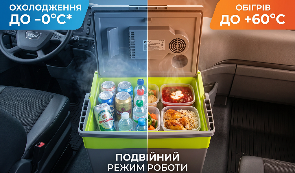 Подвійний режим роботи — холодильник підходить як для охолоджених напоїв і продуктів, так і для підтримання тепла.