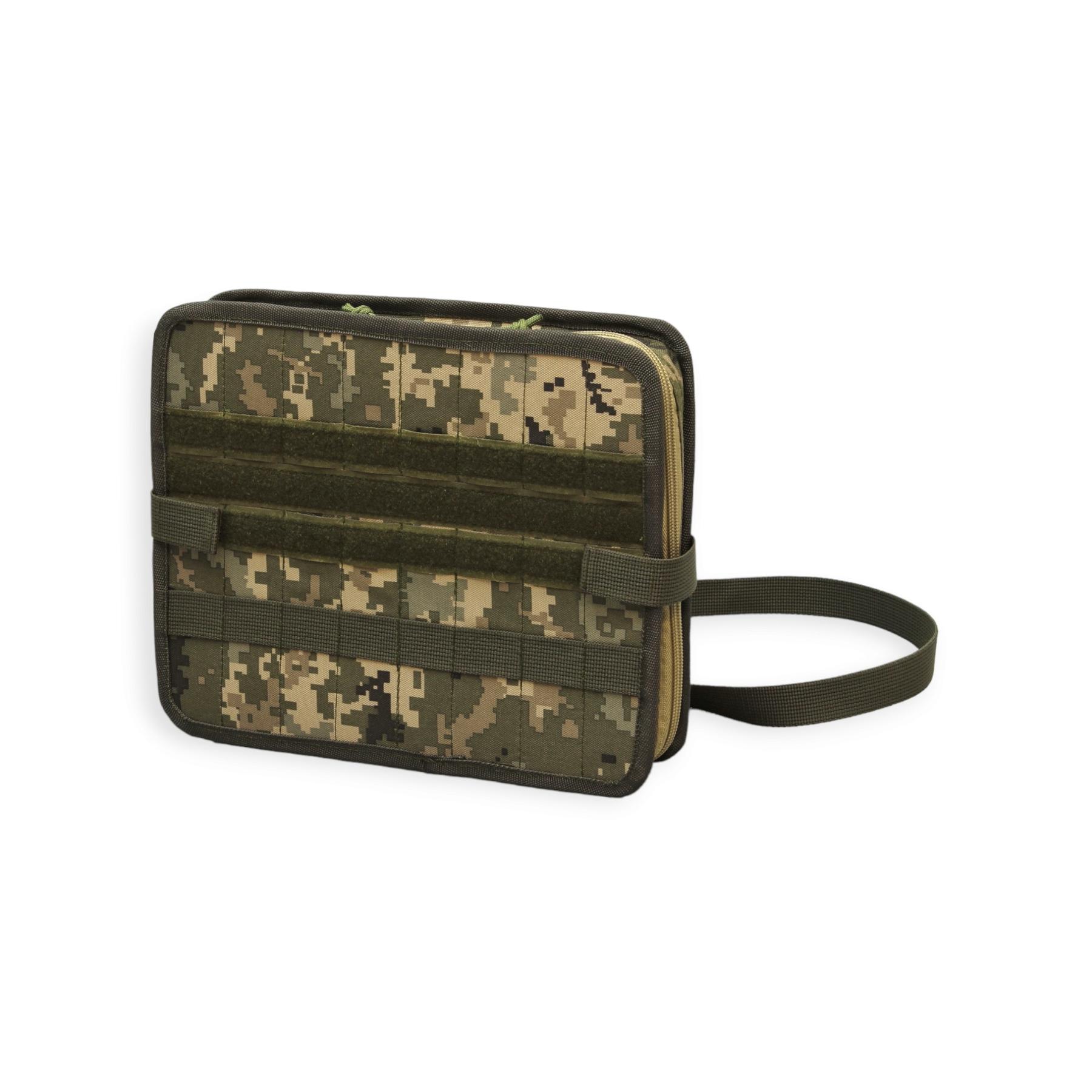 Зручна система кріплення MOLLE дозволяє кріпити підсумок до плитоноски або РПС, а коротка ручка знизу та регульований ремінь допомагають зручно переносити підсумок. Максимальний розмір планшета: 26 см * 19 см.