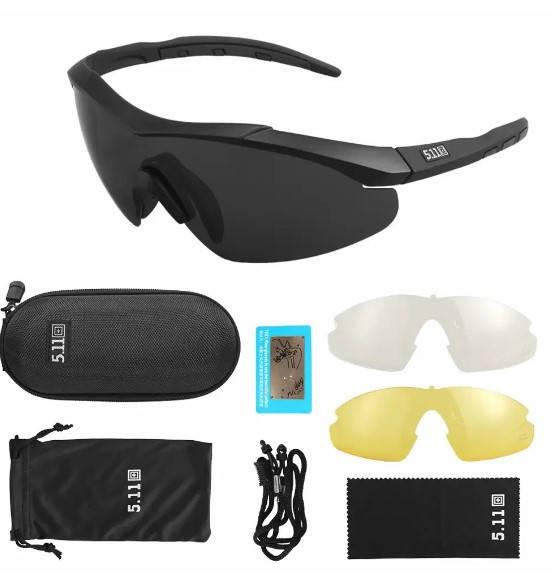 Окуляри 5.11 Чорні з поляризацією та 3 лінзами для захисту від ультрафіолету.  EK-77