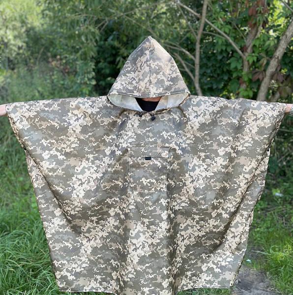 Дощовик пончо з люверсами піксель водонепроникний для велосипедистів і пішоходів DM-11