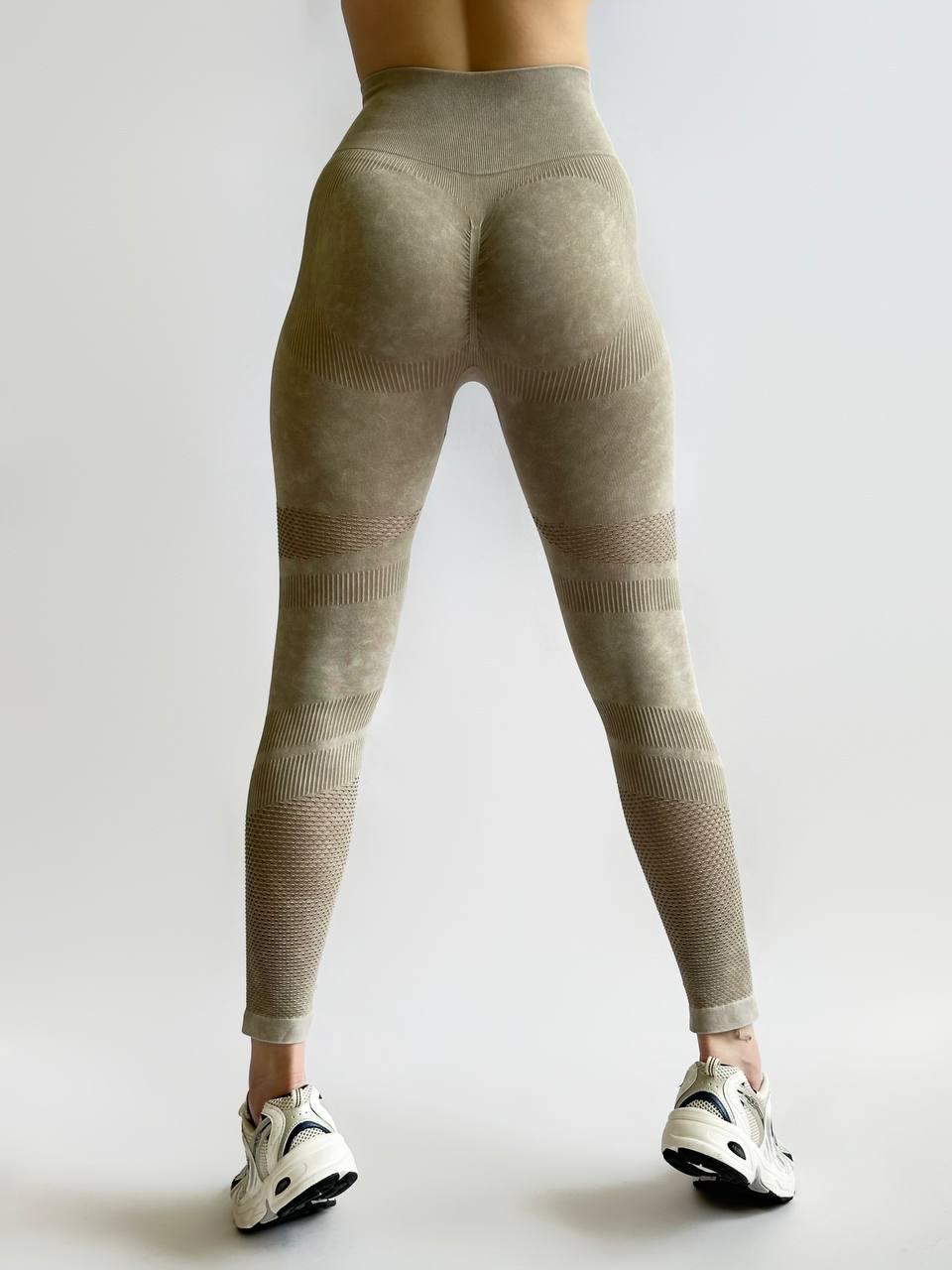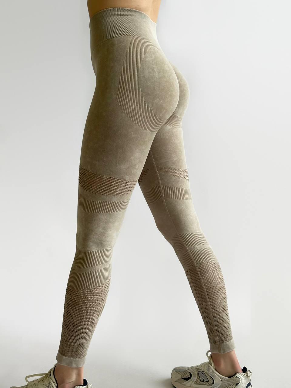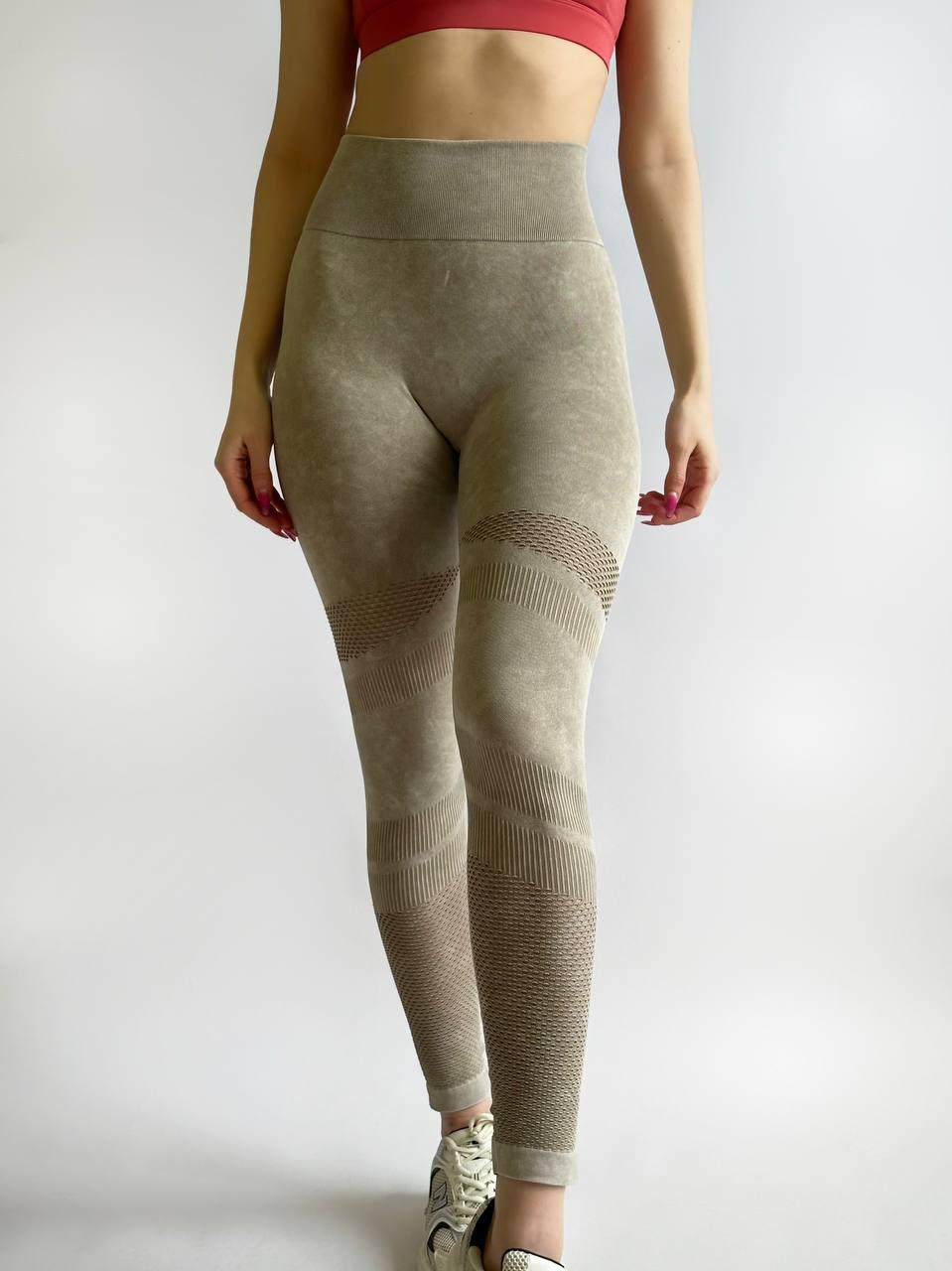 Лосини подвійний пушап жіночі легінси бежеві висока посадка Push-up
