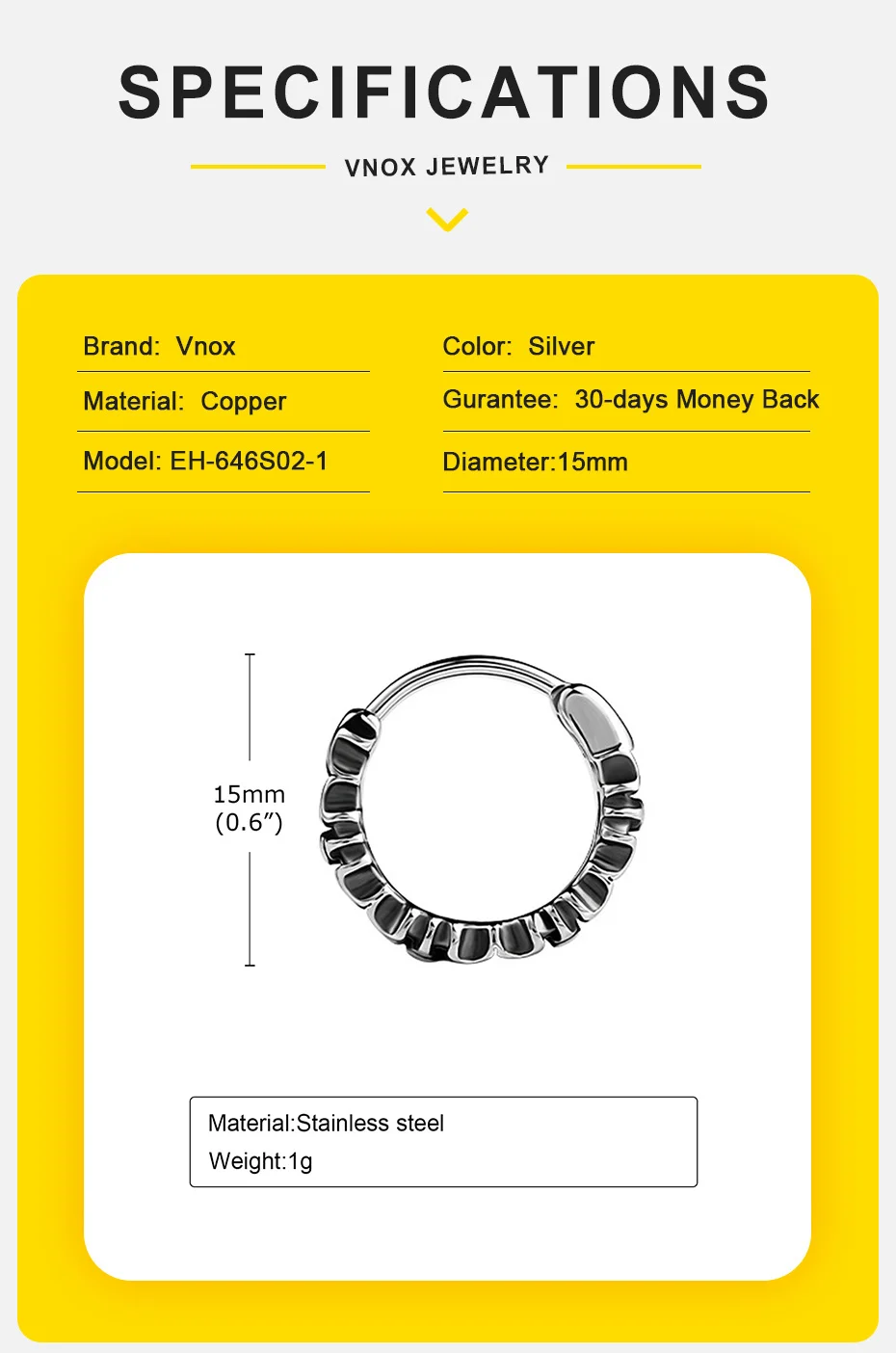 Діаметр кільця 15 мм