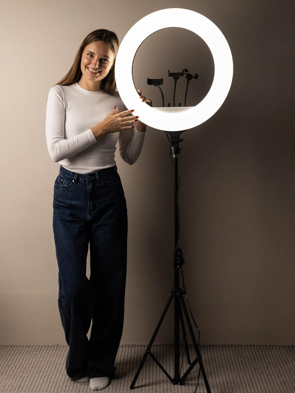 На Кільцевій лампі встановлений спеціальний світлотехнічний розсіювач для рівномірного та м'якого розсіювання світла.
