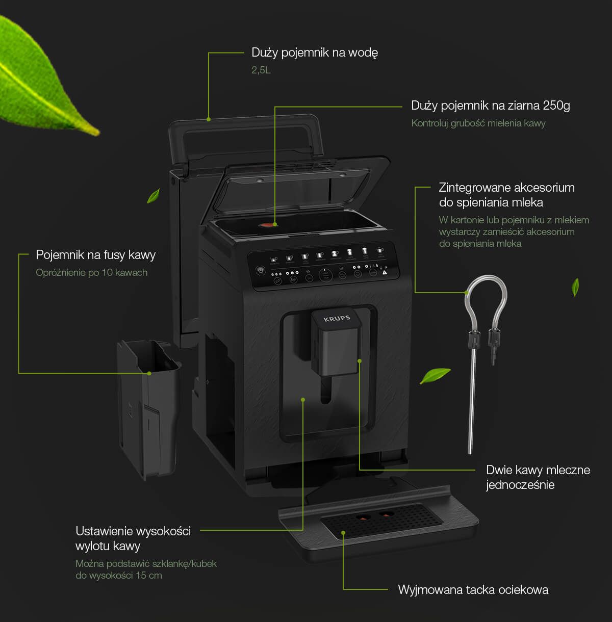 З метою турботи про навколишнє середовище ми оптимізували її структуру та кількість елементів у виробництві кавомашини. Все це було зроблено при збереженні високої якості та ефективності машини.