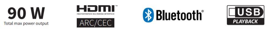 SHARP HT-SB107Компактна звукова панель 2.0Тонкий дизайн Тонкий дизайн із передньою частиною з металевої сітки та чорним матовим покриттям.Bluetooth®Бездротове відтворення музики через Bluetooth®. Розміри Довжина: 65,2 см | Висота: 6,4 см | Глибина: 8,8 смНастінне встановленняМожна встановити на стіну або розмістити на стільниці.Загальна максимальна вихідна потужність 90 ВтHDMI ARC – CECEПросте керування телевізором за допомогою пульта дистанційного керування завдяки HDMI ARC – CEC Відтворення з USB USB-вхід для відтворення та заряджання.Переваги: Загальна вихідна потужність 90 Вт. Підключення HDMI ARC / CEC дозволяє легко керувати телевізором за допомогою бездротового потокового аудіо. Цифровий оптичний вхід для підключення 3,5 мм зовнішні аналогові стереопристрої, сумісні з: MP3 та WAV (підтримуються накопичувачі до 32 ГБ) Еквалайзер із 3 попередніми настройками + незалежні низькі та високі частоти Повнофункціональний пульт дистанційного керування + функціональні клавіші на звуковій панелі Тонкий дизайн із металевою сіткою на передній панелі та матово-чорним покриттям Можна встановити на стіну або розмістити на стільниці