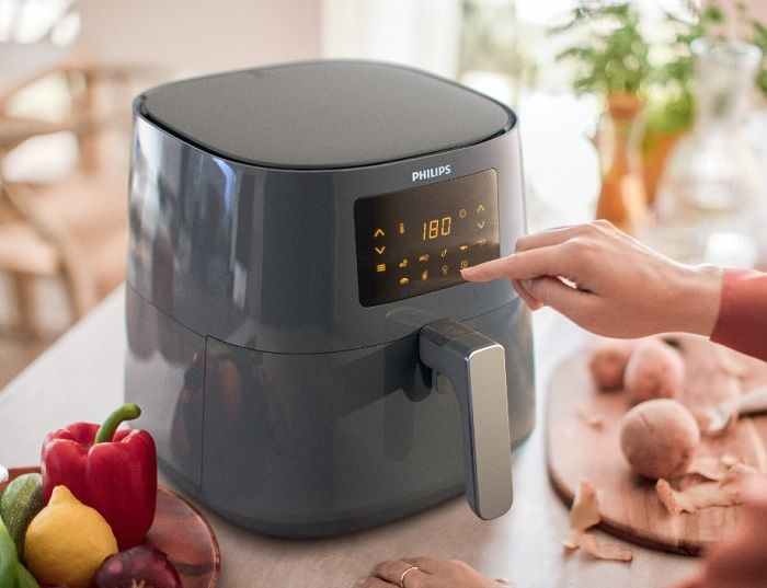 Універсальна фритюрницяНова дистанційна фритюрниця Philips серії 5000 має 13 різних функцій приготування: смаження, випікання, гриль, смаження та розігрівання. Крім того, ви можете вибирати картоплю фрі, курку, рибу тощо для ідеальних результатів щоразу. Виносна фритюрниця Philips серії 5000 об’ємом 4,1 л поєднує в собі компактний дизайн із великою місткістю – це все, що вам потрібно для приготування смачних страв.