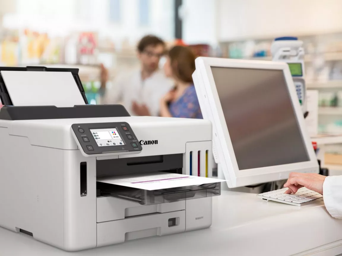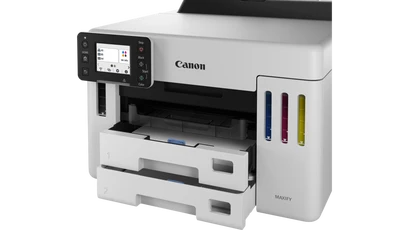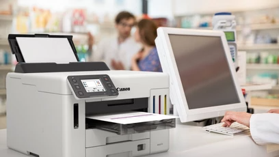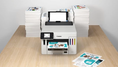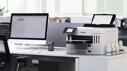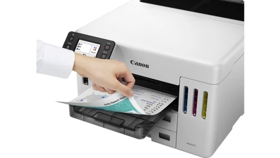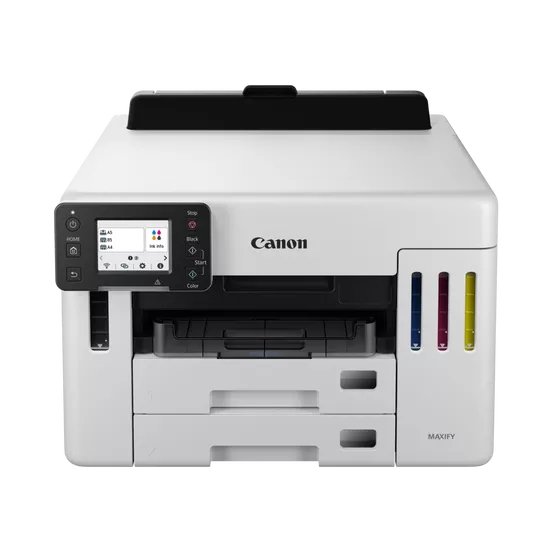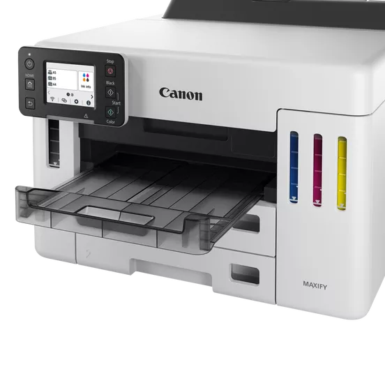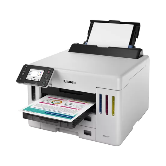 Canon MAXIFY GX5540Універсальність і комфорт, максимальна продуктивністьПринтер підтримує різноманітні носії та має великий чорнильний резервуар, що забезпечує більшу ефективність і універсальність роботи в компанії. Простий у використанні пристрій легко друкує високоякісні документи, етикетки та конверти на папері різної щільності - це ідеальне рішення для бізнесу з низькою загальною вартістю володіння (TCO).