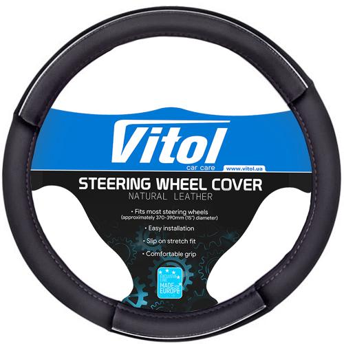 Чохол керма Vitol 17003 чорний для автомобіля S зі шкірозамінника нековзний для комфортного водіння DM-11