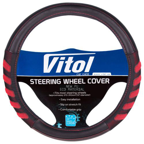 Чохол керма Vitol чорний червоний для автомобіля зі шкірозамінника з нековзною поверхнею M ЕК-77