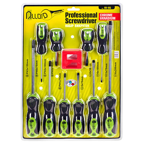 Набір викруток Alloid 10 предметів хрест та шліць для складання та ремонту з намагнічувачем VE-33