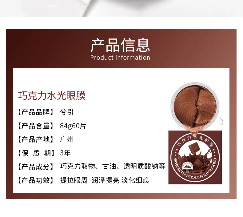 Гідрогелеві патчі під очі з екстрактом шоколаду Sersanlove Chocolate Nourishing Eye Mask мають чудовий зволожувальний, тонізувальний і антиоксидантний ефект. Патчі усувають набряки, освіжають шкіру, згладжують зморшки та усувають сліди втоми. Патчі виготовлені з якісного гідрогелю, який тане під час зіткнення з теплом шкіри, у такий спосіб сприяючи проникненню активних компонентів есенції в глибокі шари шкіри.