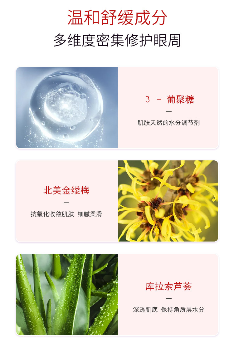 • Екстракт гамамелісу — зміцнює стінки клітин шкіри, стимулює мікроциркуляцію й обмінні процеси в епідермісі, знімає набряклість і тьмяність шкіри.