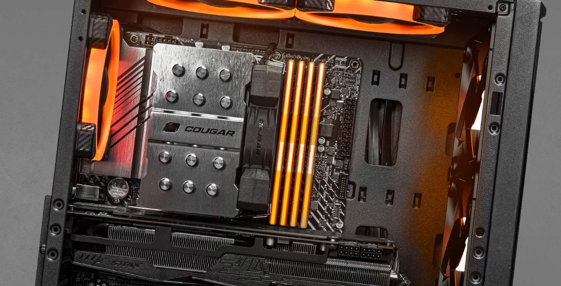 Перфорована передня вентиляційна панель є виразом відмінної візуальної індивідуальності COUGAR і забезпечує чудову вентиляцію, поєднуючи мінімалістську естетику та ефективність охолодження.