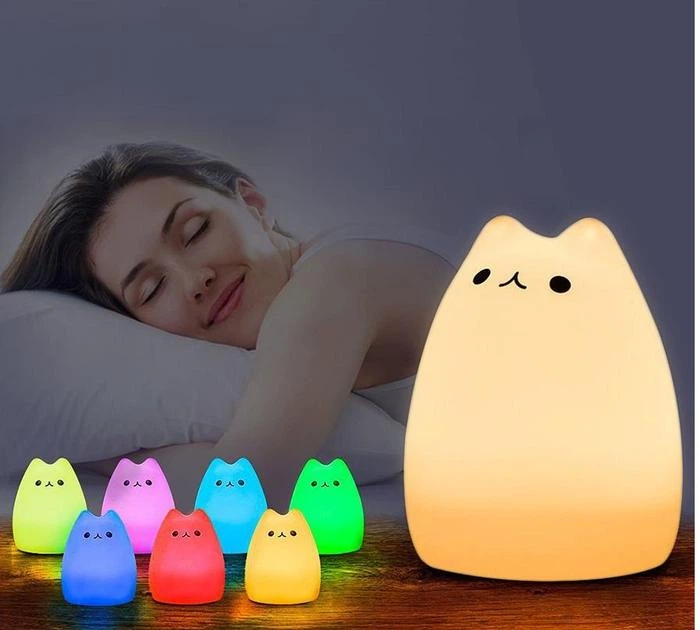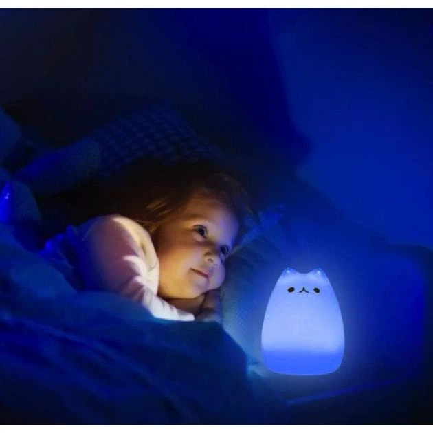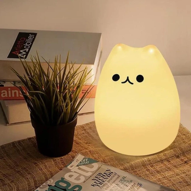 Нічний світильник котик силіконова led-нічник, дитячий силіконовий світлодіодний світильник у формі котика приємний на дотик