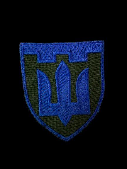 Шеврон Герб Тризуб на липучці синій 7x9 см тактичний військовий EK-77