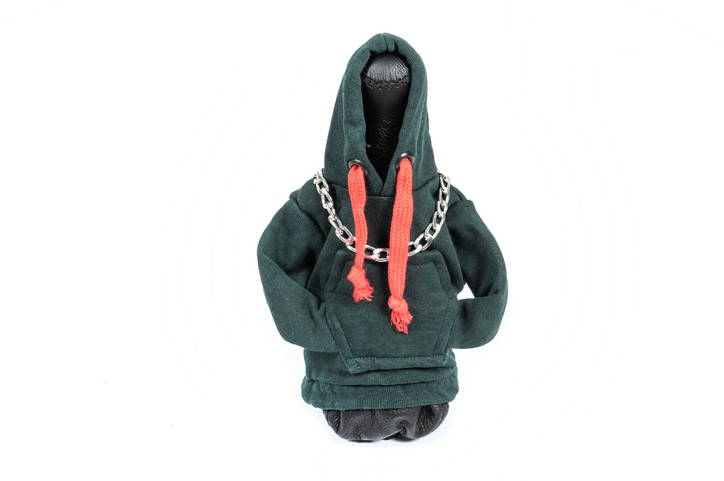 Оновіть інтер'єр вашого автомобіля за допомогою чохла кофта-худі на КПП в стильному зеленому кольорі з червоним шнурком. Цей чохол не тільки надасть унікальний вигляд вашому салону, але й захистить важіль КПП від зносу та забруднень.