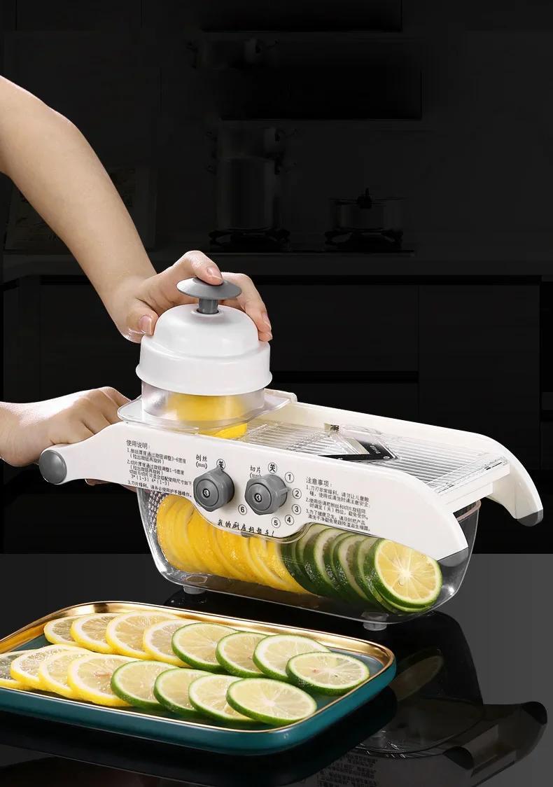 【Багатофункціональнийдизайн】 Ця швидка скиборізка може не тільки легко нарізати лимони, але також підходить для нарізання і подрібнення різних фруктів і овочів. Це багатофункціональна машина, яка може легко впоратися з різними потребами в нарізці. А робота проста і швидка, що може принести вам багато зручності!
