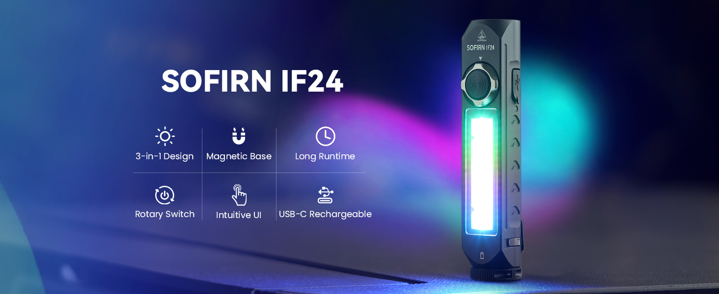 Ліхтар Sofirn IF24 - це EDC ліхтарик, який поєднує біле світло і кольорові світлодіоди. Незалежно від того, чи ви на кемпінгу, в поході або на риболовлі, кілька джерел освітлення забезпечують гнучкість. Використовуйте яскраве біле світло для орієнтування у темряві, червоне світло для збереження нічного зору, або зелене/синє світло для читання карт і відстеження.