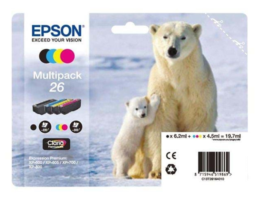 Чорнило 26 Polar Bear Claria Premium, мультиупаковка CMYKЧорнила Claria Premium створюють документи з чітким, чітким текстом і надзвичайними глянцевими фотографіями з деталізацією та насиченими яскравими кольорами. Ідеальний баланс у сучасному будинку. Чорнило Epson Claria Premium Ink є ідеальним вибором для активних домашніх користувачів, які хочуть друкувати як високоякісні документи, так і дивовижні глянцеві фотографії. Збережіть особливі спогади для майбутніх поколінь: фотографії, надруковані чорнилом Claria Premium, зберігатимуться у фотоальбомі до 300 років1.