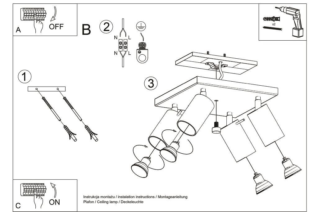 Освітіть свій інтер'єр за допомогою стельового світильника з 4 лампами, який можна встановити в будь-якій кімнаті. Регульовані кронштейни дають вам велику свободу у створенні атмосфери інтер'єру - від теплих сутінків до повного світла, в залежності від положення плафонів. Стельовий світильник був розроблений з урахуванням простоти використання - подивіться, як він подбає про ваш комфорт.