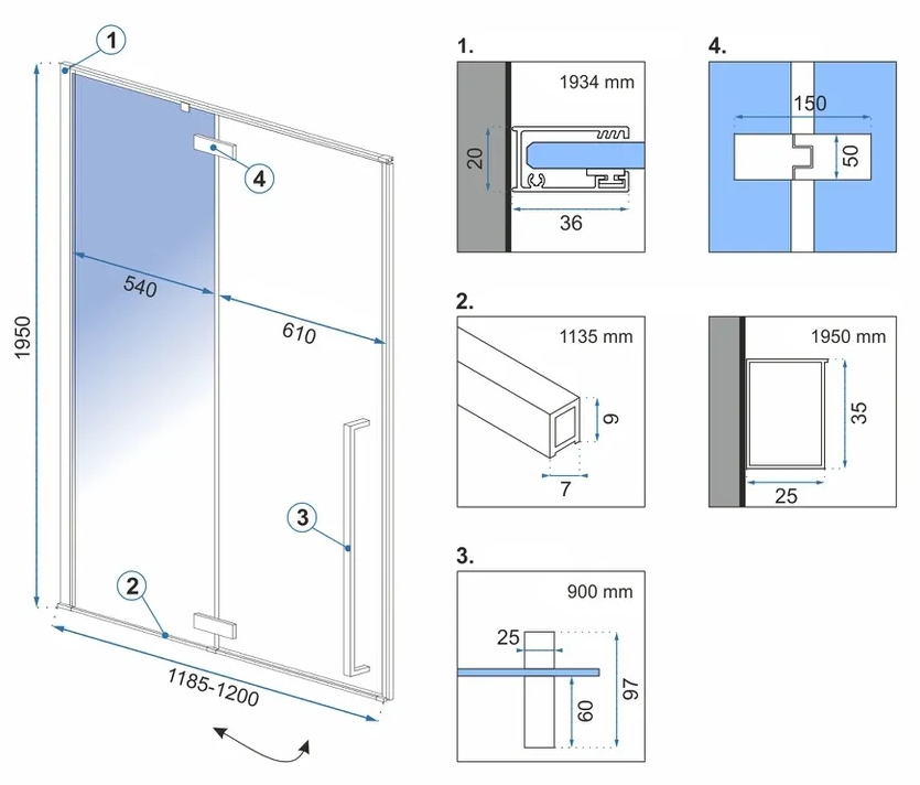 Завдяки своїй конструкції двері FARGO дозволяють встановлювати їх на душовий піддон різної висоти або прямо на підлогу. У комплект входить все необхідне для встановлення дверей: ущільнювачі, ручка, петлі.