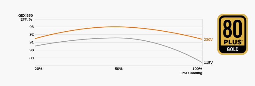 Серія GEX відрізняється високоефективною конструкцією, яка перевершує стандарт 80 PLUS Gold, що допоможе вам заощадити гроші на рахунках за електроенергію.