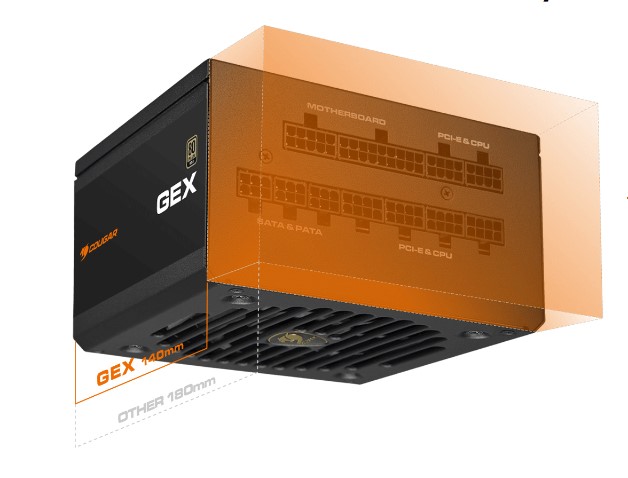 При довжині 140 мм GEX є одним з компактних повністю модульних блоків живлення. Він підходить для широкого спектру корпусів, забезпечуючи додаткову гнучкість при збірці ПК.