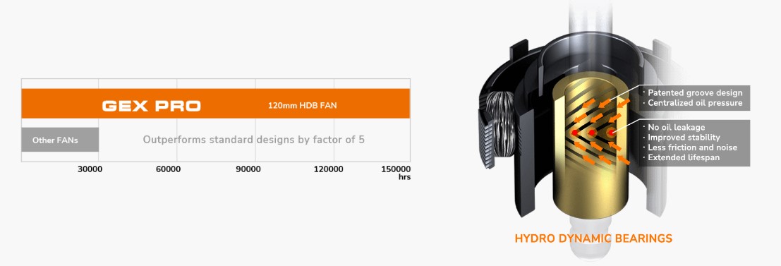Порівняно з іншими типами вентиляторів, вентилятор з HDB-підшипниками вважається найкращим у своєму класі за рівнем шуму під час роботи та очікуваного терміну служби. Гідродинаміка значно знижує тертя та вібрацію, що призводить до підвищення надійності та тихішої роботи.