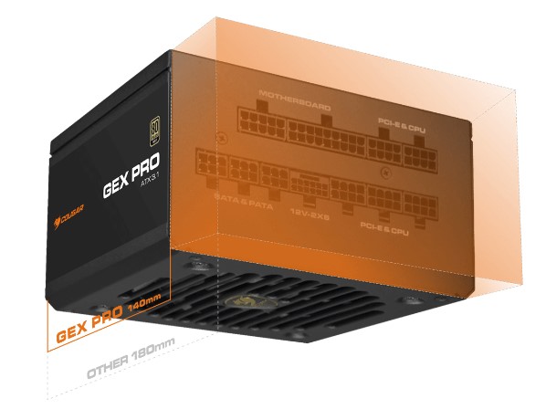 При довжині 140 мм GEX PRO є одним з компактних повністю модульних блоків живлення. Він підходить для широкого спектру корпусів, забезпечуючи додаткову гнучкість при збірці ПК.