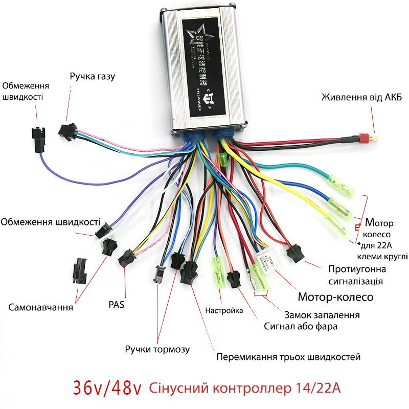 Контроллер для мотор колеса Huawei 36-48v-500 Вт 21А синусний
