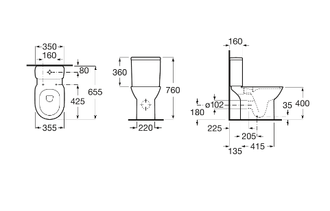 Глибина: 355 мм. Висота: 760 мм.