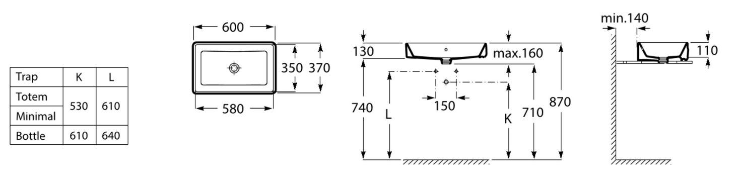 Спосіб встановлення: на стільницю