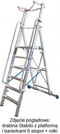 Сходи односторонні 1х10 з великою платформою та стабілізатором KRAUSE STABILO 127549Переваги продуктуРозміриТранспортні розміриДеталіВисота 1,0 м, ергономічно розміщені планка безпеки та ланцюгСтійке з'єднання поздовжніх елементів металевими з'єднаннямиВелика неслизька платформа 500x450 ммПоручні з обох сторін забезпечують безпечний вхід/вихідЗамок, що захищає від автоматичного складання/розкладання драбиниНадійні ремені обмеження відстані, встановлені в металевих затискачахШпонкове з'єднання ступенів зі стрингерамиДодаткові кутові підсилення нижньої ланки забезпечують стійкістьСтабілізатор з роликами, що підвищує стійкість і забезпечує легкість переміщенняЛегке транспортування драбини в складеному чи розкладеному станіШвидке та просте складання мобільної драбини для транспортування чи зберіганняSafetyCap - двокомпонентні ніжки