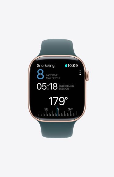 Готовий до будь-яких кроків.APPLE Watch 10 — ідеальний компаньйон для тренувань — він не лише відстежує активність і дає цінні поради, але й мотивує вас рухатися. Він оснащений датчиком температури води, який полегшує підготовку до водних тренувань, і датчиком глибини, тож ви можете безтурботно використовувати його під час плавання та підводного плавання.