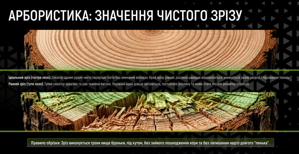 Санітарна та формувальна обрізка кущів, декоративних і плодових дерев, видалення сухих і пошкоджених пагонів.