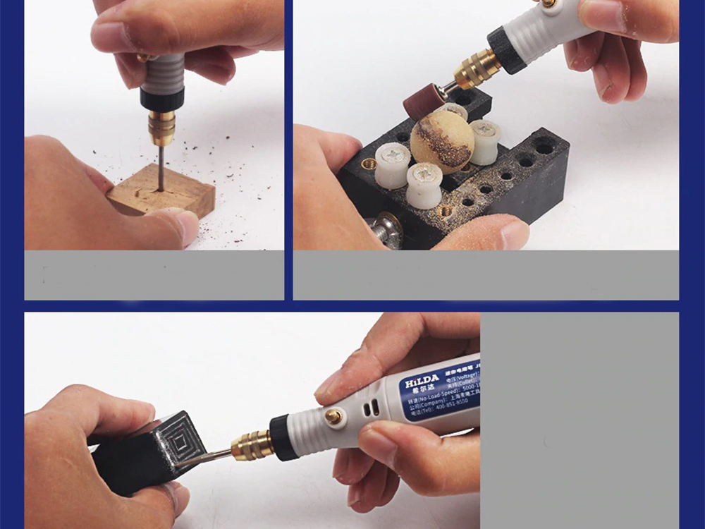 Міні гравер Hilda 18 В - це мініатюрний гравер, який використовують для гравірування, шліфування, полірування і безлічі інших робот з маленькими деталями.