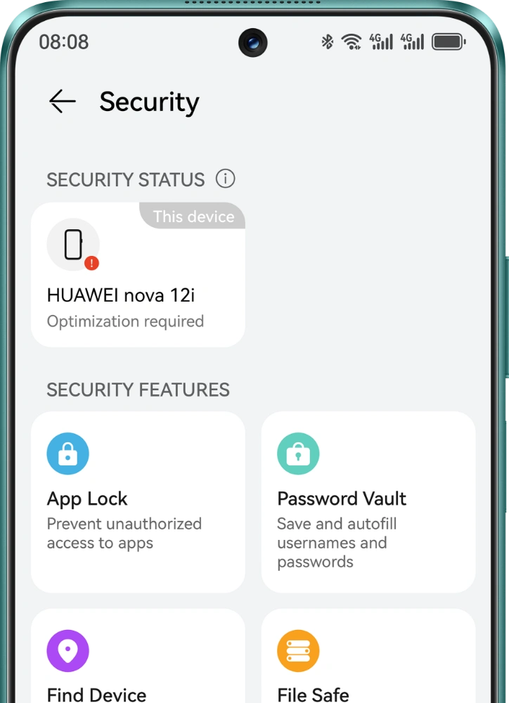 HUAWEI nova 12i має величезний запас енергії на цілий день завдяки ємному акумулятору ємністю 5000 мА·год. За потреби можна швидко зарядити в режимі HUAWEI SuperCharge Turbo 40 Вт — від 3% до 62% всього за 30 хвилин.