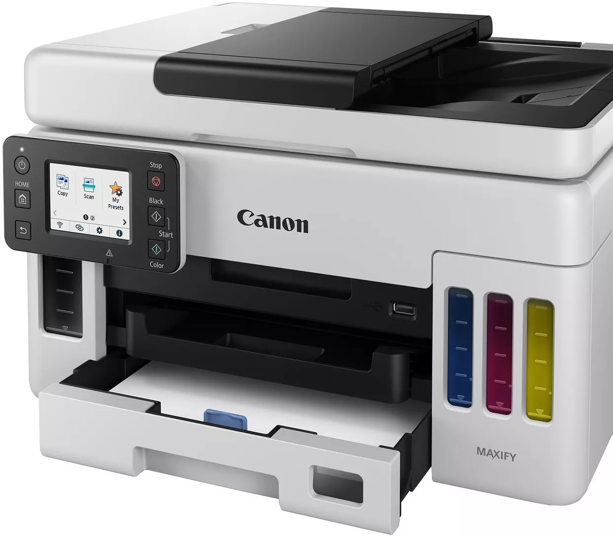 Canon Maxify GX6050 Універсальний багатофункціональний пристрій Canon MAXIFY GX6050 заощадить ваш час і зменшить витрати як вдома, так і в малому бізнесі. Висока економія праці та енергоефективність йдуть рука об руку з якістю та швидкістю копіювання, сканування та друку. Крім того, завдяки місткому пристрою подачі паперу він завжди готовий до роботи, а заміна та обслуговування надзвичайно прості.