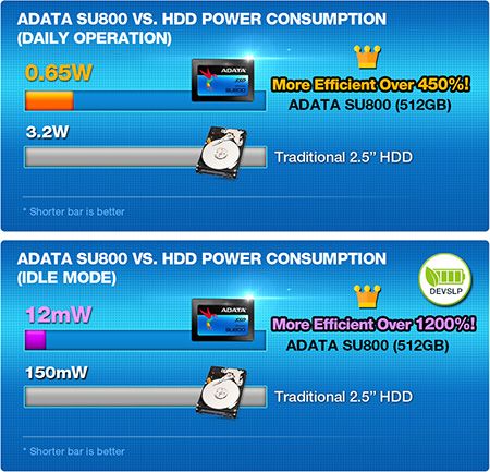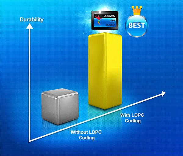 Надійний твердотільний накопичувач SU800. 3D SSD, доведений до повного рівняТвердотільний накопичувач SU800 відповідає своїй найвищій назві Ultimate завдяки флеш-пам’яті 3D NAND, яка забезпечує більшу щільність зберігання, продуктивність і надійність, ніж традиційна пам’ять 2D NAND. Він оснащений інтелектуальною системою кешування SLC і буфером DRAM, що ще більше покращує продуктивність читання/запису. Крім того, такі функції та технології LDPC ECC, як висока TBW (загальна кількість записаних бітів) і DEVSLP (режим сну пристрою), означають, що Ultimate SU800 миттєво виводить ваш ноутбук або настільний комп’ютер на рівень надзвичайної стабільності, довговічності та неймовірної продуктивності. Крім того, користувачі можуть безкоштовно завантажити безкоштовний інструментарій ADATA для SSD і програмне забезпечення для міграції, щоб насолоджуватися легким керуванням даними та міграцією.3D Flash NAND наступного поколінняВпровадження вдосконаленої флеш-пам’яті 3D NAND надало Ultimate SU800 додаткову ємність, більшу продуктивність і захист від складних умов за кращого співвідношення ціни та продуктивності, ніж будь-коли раніше. Ultimate SU800 досягає швидкості читання/запису 560 МБ/с і 520 МБ/с відповідно, що дозволяє миттєво прискорити роботу комп’ютера.Великий діапазон потужності та високий TBWЗавдяки гнучкості 3D NAND Ultimate SU800 можна запропонувати з різною ємністю від 128 ГБ до 1 ТБ. Ви можете підібрати відповідний диск під свої потреби, будь то диск для запуску системи або диск для зберігання даних. Усі моделі Ultimate SU800 забезпечують велику загальну кількість записаних байтів, або TBW, що означає кількість разів, коли диск повністю записувався до межі своєї ємності протягом усього життєвого циклу. TBW Ultimate SU800 перевершує аналогічні моделі, що означає довговічність SSD.Інтелектуальне кешування SLC і буфер DRAMІнтелектуальний алгоритм кешування SLC дозволяє флеш-пам’яті NAND працювати в режимі SLC, що прискорює швидкість читання/запису даних. Крім того, за допомогою буфера DRAM продуктивність читання/запису може бути вдвічі вищою порівняно з твердотілими накопичувачами без буфера DRAM, або, іншими словами, накопичувачами, які не можуть використовувати системну пам’ять як буфер SSD у високому рівні. ситуації інтенсивного використання.Розширена технологія LDPC ECC EngineUltimate SU800 також пропонує перевірку бітів парності з низькою щільністю, що призводить до значного зменшення помилок запису даних і настільки ж значного підвищення узгодженості даних. Таким чином, безцінний вміст, що зберігається на ньому, захищено набагато більшою мірою, ніж у SSD-накопичувачах без ECC або навіть на SSD-накопичувачах, які використовують просте виправлення помилок BCH.Найкращий захист із RAID Engine і Data ShapingЗавдяки підтримці механізму RAID і формування даних, Ultimate SU800 забезпечує узгодженість даних і подовжений життєвий цикл SSD для кращої довгострокової стабільності та покращення рентабельності інвестицій.Перевершіть жорсткі диски з величезним приростом продуктивностіЗавдяки використанню найякісніших матеріалів і передових технологій, Ultimate SU800 перевершує традиційні жорсткі диски не лише набагато швидшим запуском системи та отриманням даних, але й загальною продуктивністю завдяки швидшому запису/читанню даних.Нижче споживання енергії та довший термін служби акумулятораUltimate SU800 підтримує технологію DEVSLP (device sleep), яка покращує його ен