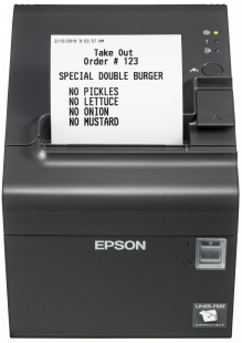 Економічний принтер TM-L90LF друкує етикетки без підкладки та квитанції, щоб підвищити ефективність роботи користувача та знизити загальну вартість володіння (TCO). Оскільки принтер підтримує самоклеючі носії, користувачі можуть точно маркувати замовлення їжі та напоїв, тим самим підвищуючи задоволеність клієнтів.