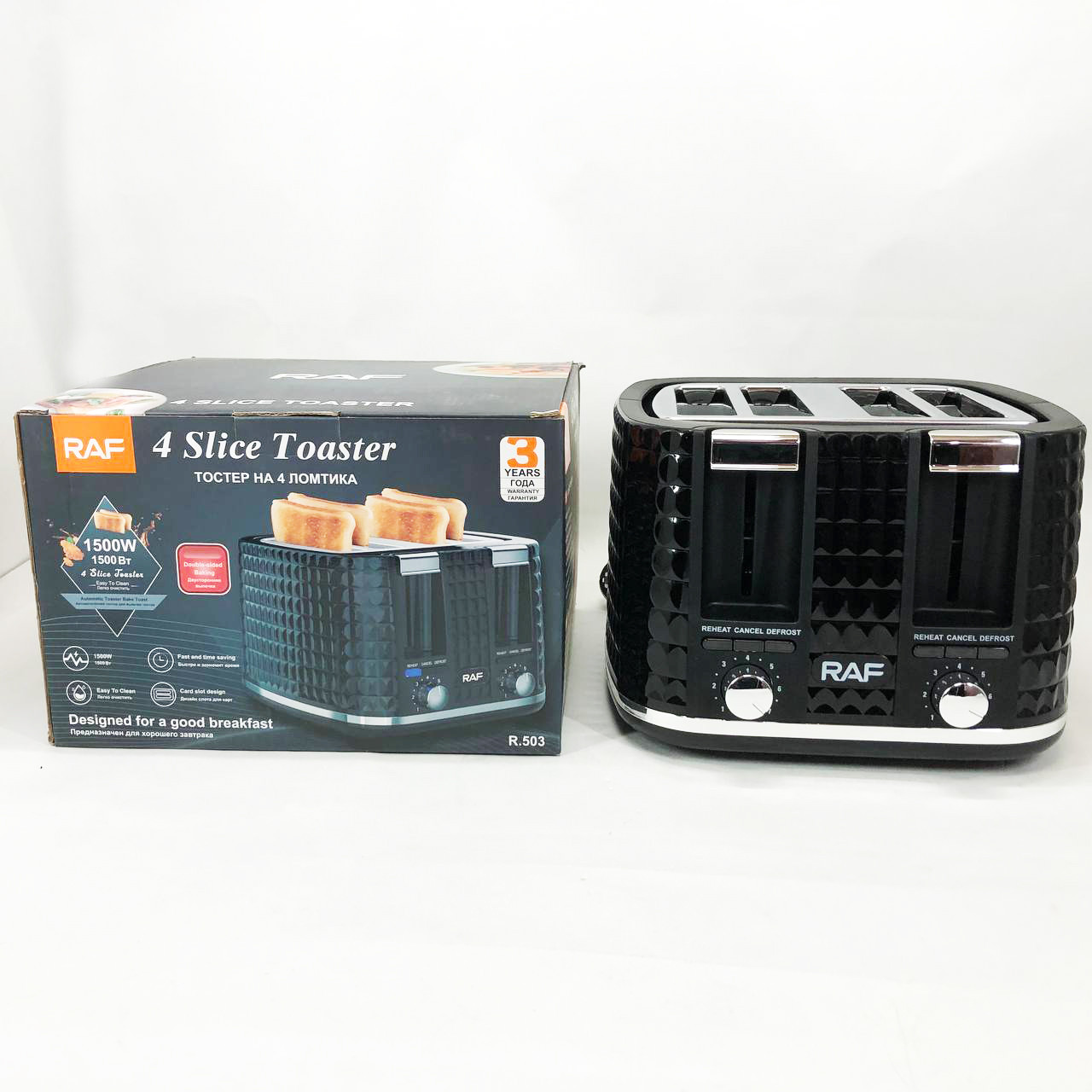 ✨ Тостер RAF R.503 – це універсальний помічник для швидкого та зручного приготування ідеальних тостів. Завдяки потужності 1500 Вт і можливості готувати 4 тости одночасно, цей прилад стане незамінним рішенням для сімейного сніданку або частування гостей.
